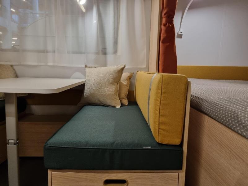 Nieuw, deze mooie en complete Adria Aviva 522 PT van modeljaar 2025. Deze caravan heeft een dwarsbed en een stapelbed.