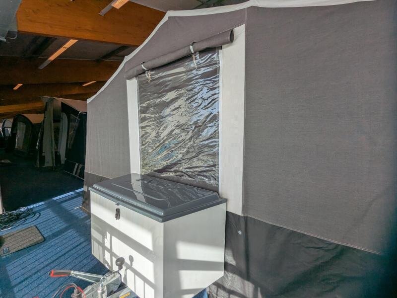 - Voorwand van de voortent past ook in de luifel