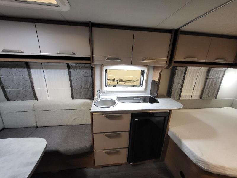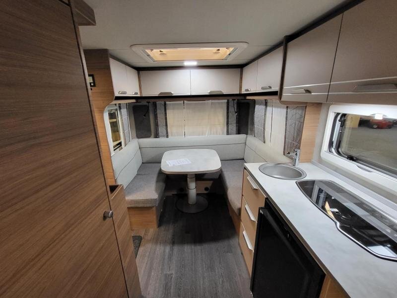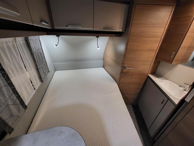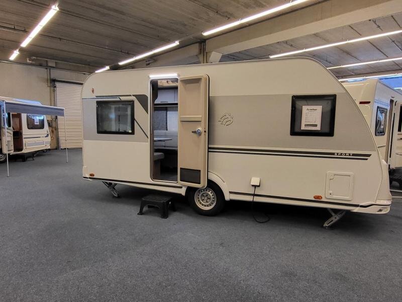 Een eigenlijk nog nieuwe Knaus Sport 450 FU met fransbed. De caravan is van bouwjaar 2023. Mooi compleet uitgevoerd met een nog zo goed als nieuwe Isabella Ventura D250 voortent met glasfiber frame.